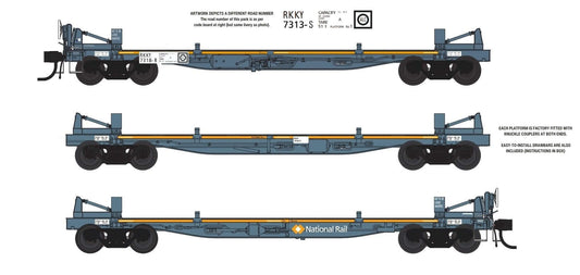 HO scale RKKY 3 platform wagon, Pack Number 1001-RKKY (Road Number RKKY 7313-S)
